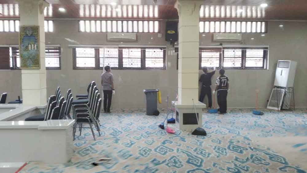 Menyampaikan, kegiatan pembersihan tersebut dilakukan di beberapa titik ruangan yang mengalami kerusakan.