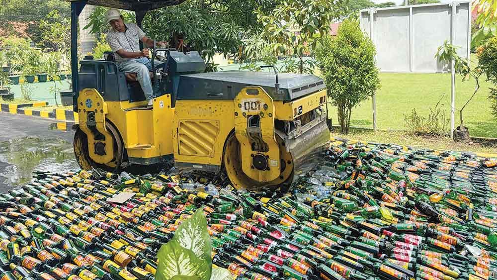 Dalam kegiatan tersebut, ribuan knalpot yang tidak memenuhi spesifikasi dihancurkan dengan alat pemotong, sedangkan botol miras dimusnahkan menggunakan kendaraan berat jenis stum.