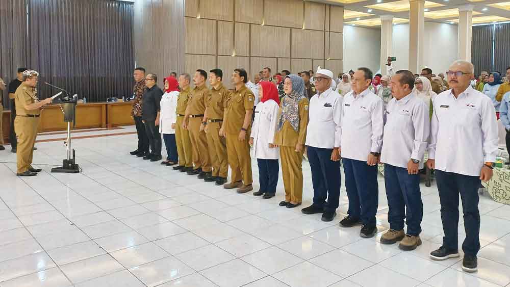 Bupati Cirebon saat kick off pencanangan Bulan Dana Kemanusiaan PMI Kab Cirebon di ruang Nyimas Gandasari Setda, Selasa, 7 Oktober 2025.* (Foto: Islah/Suara Cirebon)