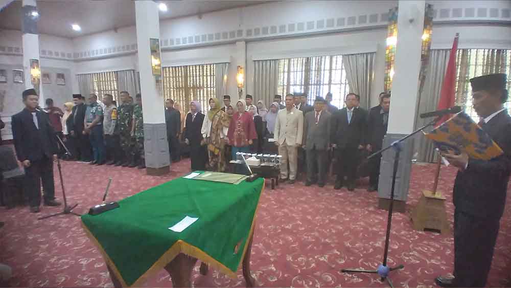 “Saya juga sebenarnya grogi, karena ini pertama kali saya melantik Penjabat Sekda,” ujar Wali Kota Edo, disambut tepuk tangan hadirin.