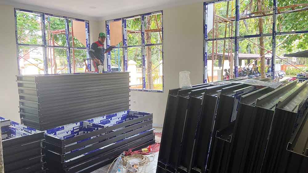 Saat ini, lanjut Wawan, pengerjaan tengah difokuskan pada pemasangan kusen dan jendela di lantai bawah.