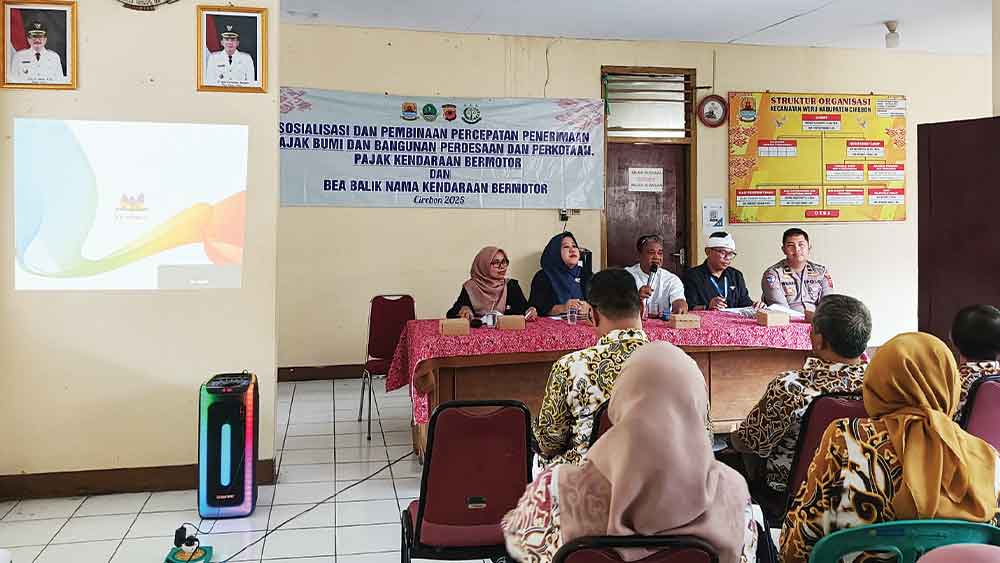 SUARA CIREBON – Badan Pendapatan Daerah (Bapenda) Kabupaten Cirebon melakukan sosialisasi dan pembinaan percepatan penerimaan Pajak Bumi dan Bangunan Perdesaan dan Perkotaan (PBB-P2), Pajak Kendaraan Bermotor (PKB) dan Bea Balik Nama Kendaraan Bermotor (BBNKB) kepada kuwu dan sekdes se-Kecamatan Weru, Kamis, 6 November 2025.
