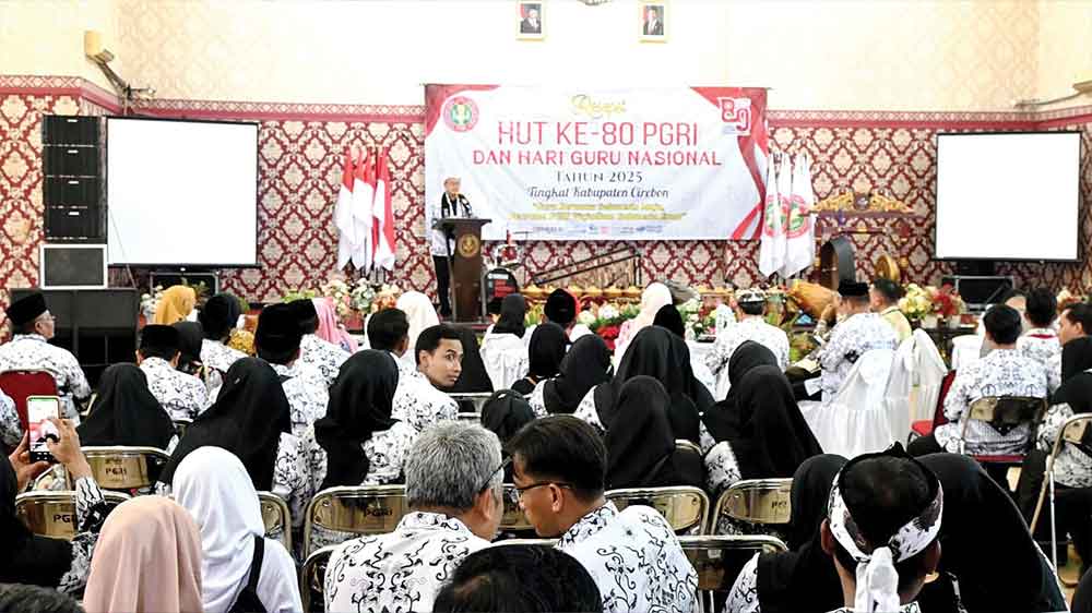 Hal itu dikemukakan Bupati Imron di hadapan ratusan guru, saat Resepsi Hari Guru Nasional dan HUT ke-80 Persatuan Guru Republik Indonesia (PGRI) tingkat Kabupaten Cirebon di gedung PGRI Kabupaten Cirebon, Sumber, Selasa, 25 November 2025.
