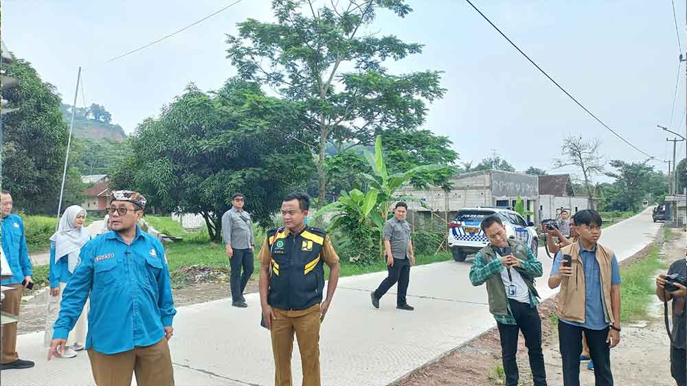 Bupati Cirebon, H Imron, saat meninjau proyek betonisasi jalan yang dikejakan swakelola dalam Safari Pembangunan di wilayah barat, Senin, 15 Desember 2025.* (Foto: Islah/Suara Cirebon)
