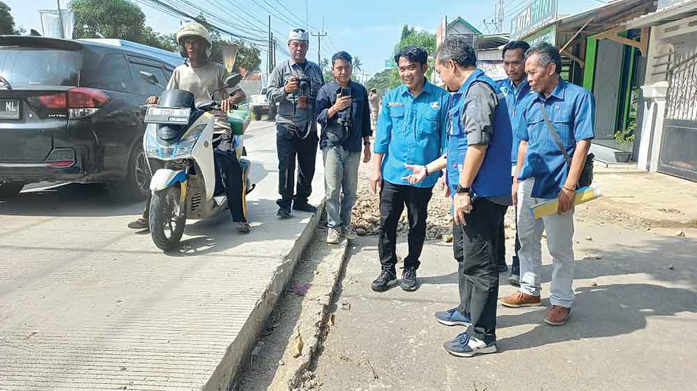 Wakil Bupati Cirebon, H Agus Setiawan, memeriksa peningkatan jalan menggunakan betonisasi hasil pekerjaan DPUTR, belum lama ini.* (Foto: Baim/Dokumen/Suara Cirebon)