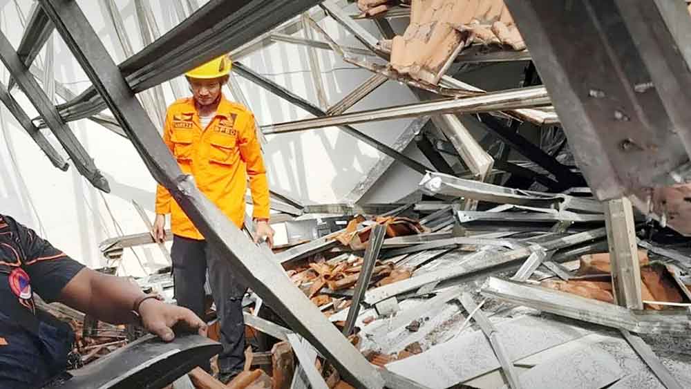“Rangka baja ringan pada atap diduga tidak mampu menahan beban air hujan. Atap tersebut diketahui terakhir kali diperbaiki pada tahun 2008,” kata Agus.